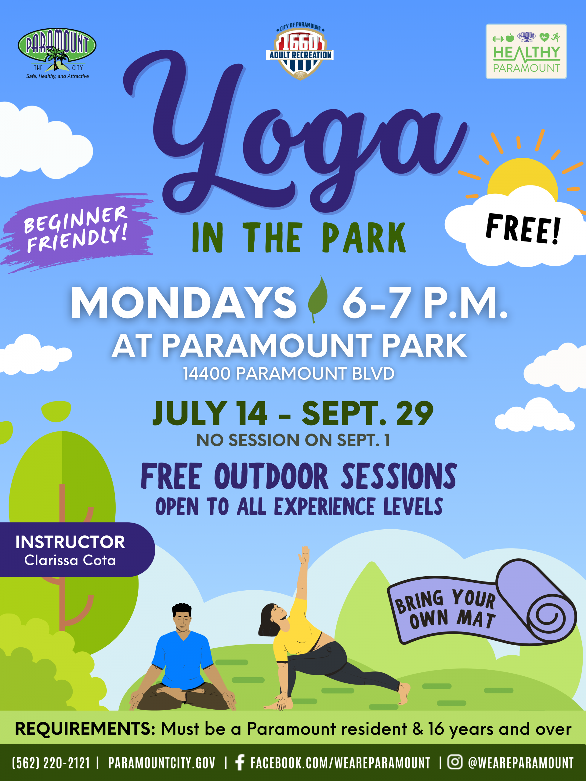 Requirements: Must be a Paramount resident ages 16 or older. No pre-registration, just show up. First-come, first-served, maximum capacity of 40, and a signed waiver will be required.