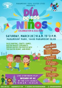 Join us for Dia de los Niños on March 28 at Paramount Park from 10:00 a.m. to 1:00 p.m.!
