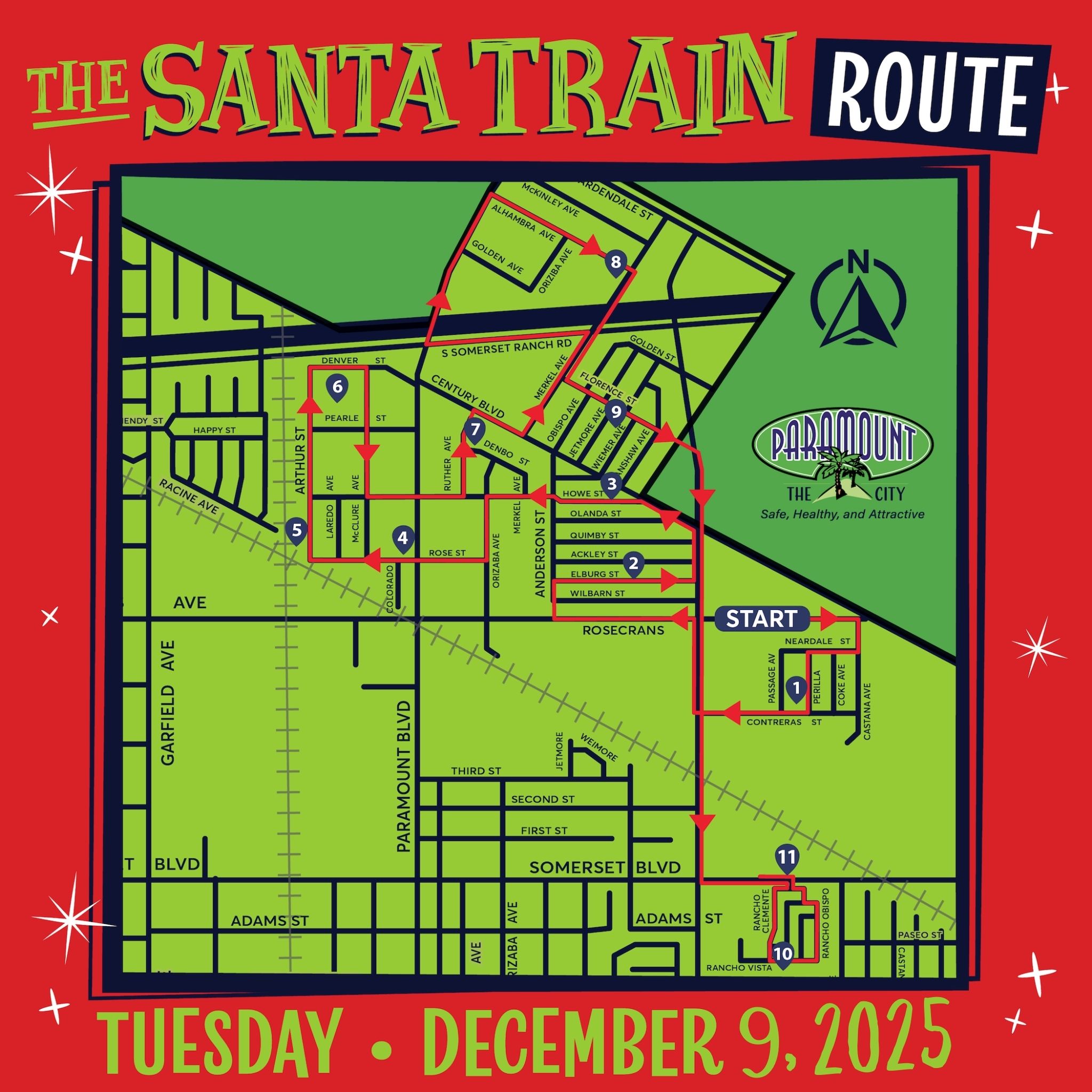 The Paramount Santa Train has been delivering holiday cheer to kids in every neighborhood of town since 1969. See below for the date and stops.