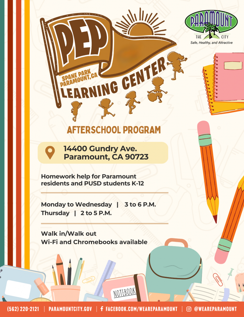 The Paramount Education Partnership is a city-run program that operates at the Paramount Petroleum Community Learning Center. The center is located at Spane Park, 14400 Gundry Avenue.